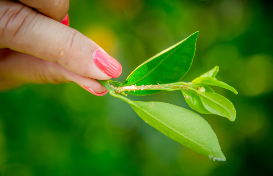 Asian citrus psyllid nymphs on citrus leaf
