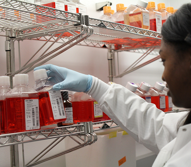 (c) UCR - student looking through chemicals on a shelf