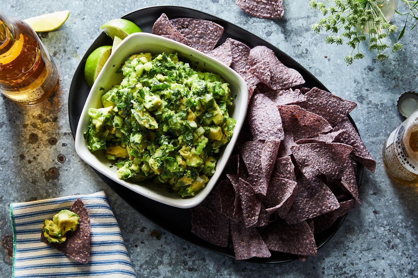 Guacamole with chips, avocado
