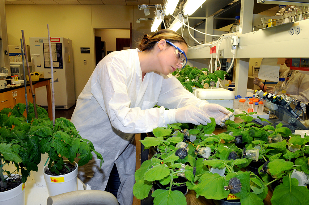 Nematology student with plants (c) UCR / CNAS