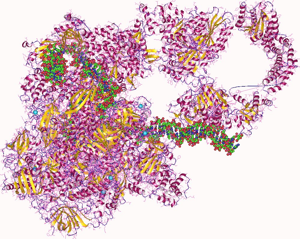 RNA polymerase enzyme + opened DNA helix, Human (c) Wikimedia Commons