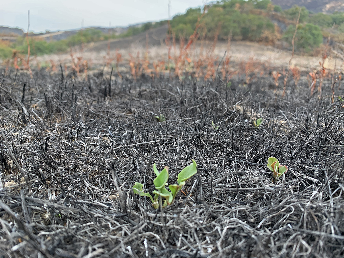 Vegetation has already begun to resprout in burned areas of Hastings Natural History Reservation. Image: Jen Hunter